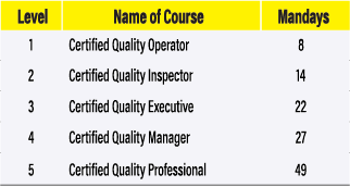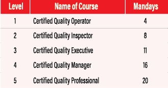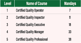 This ISO 9001 programme provides participants with a practical understanding of Quality Management System requirements based on international standards, with five levels of competency: Certified Quality Operator, Certified Quality Inspector, Certified Quality Executive, Certified Quality Manager, and Certified Quality Professional. The programme focuses on real-world application, process improvement, and compliance to support consistent quality and customer satisfaction across organisations.